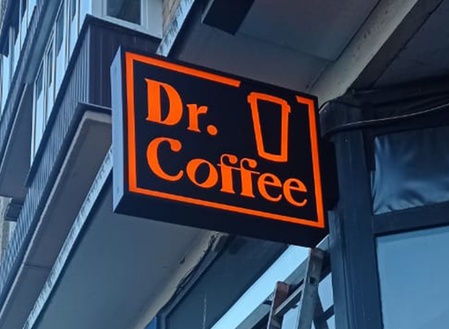 • Нестандартных форм, в виде фигур, олицетворяющих заведение и вид бизнеса. Например, это могут быть пивные кружки для паба или кофейные чашки над входом в кофейню.